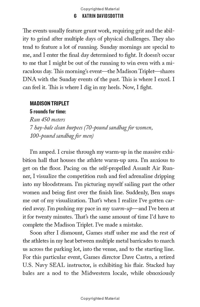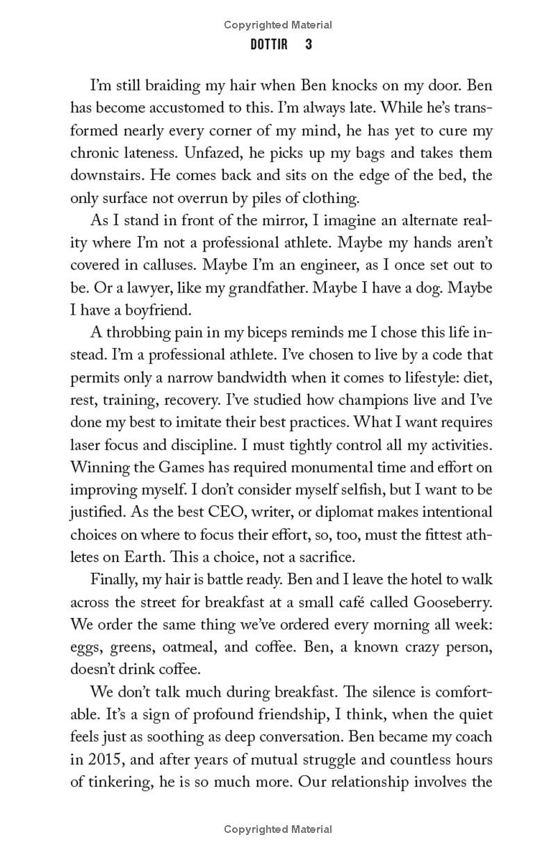 Dottir is two-time consecutive CrossFit Games Champion Katrin Davidsdottir's inspiring and poignant memoir. As one of only two women in history to have won the title of “Fittest Woman on Earth” twice, Davidsdottir knows all about the importance of mental and physical strength. She won the title in 2015, backing it up with a second win in 2016, after starting CrossFit in just 2011. A gymnast as a youth, Davidsdottir wanted to try new challenges and found a love of CrossFit. But it hasn't been a smooth rise to the top. In 2014, just one year before taking home the gold, she didn't qualify for the Games. She used that loss as motivation and fuel for training harder and smarter for the 2015 Games. She pushed herself and refocused her mental game. Her hard work and perseverance paid off with her return to the Games and subsequent victories in 2015 and 2016. In Dottir, Davidsdottir shares her journey with readers. She details her focus on training, goal setting, nutrition, and mental toughness.