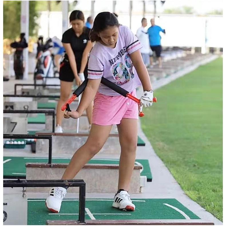 - Giúp nguời chơi hoàn thành các bài tập, tạo tư thế tay cầm đúng cách, xoay vững vàng hơn. Hỗ trợ tập đúng kỹ thuật swing golf • Luyện backswing, downswing, Impact. • Giúp xoay hông đúng để giữ hướng và gia tăng lực đánh • Chống slice,Tập Lag. • Luyện giữ thẳng tay trái giúp đánh thẳng và impact chuẩn. • Dụng cụ gọn nhẹ hỗ trợ tập đơn giản và hiệu quả, có thể kết hợp với nhiều bài tập khác.