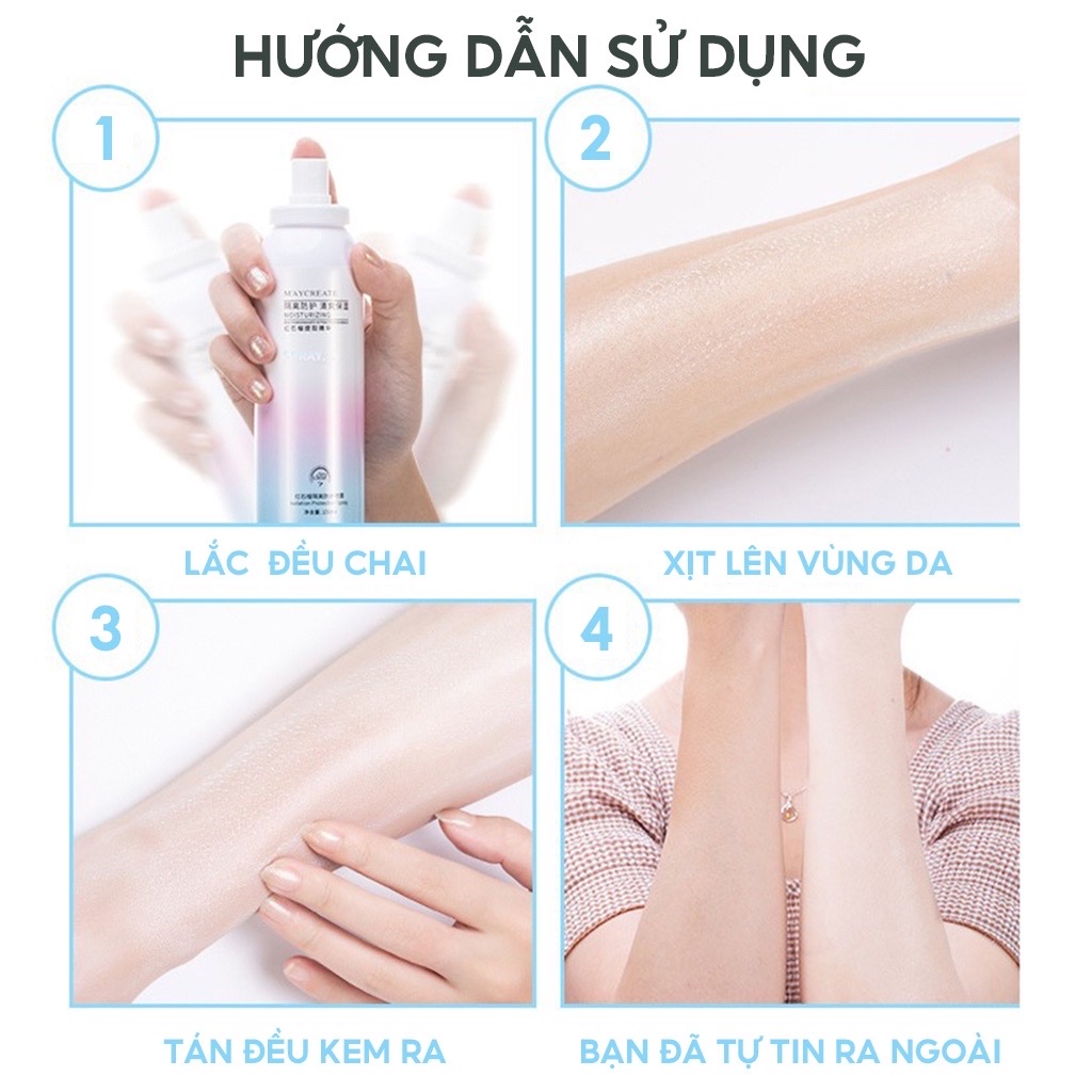 -Dụng cụ trang điểm làm đẹp sức khỏe _ Xịt chống nắng , chống tia UV chai 150ml , bảo vệ cho cả mặt và toàn thân , giữ ẩm da ,chống thấm nước ,không nhờn ,bết dính không tắc nghẽn lỗ chân lông ,phù hợp với mọi loại da -Xuất xứ : Trung Quốc -Thể tích : 150ml -Xịt chống nắng , dưỡng trắng da là sản phẩm bảo vệ bạn khỏi tia UV , tác nhân gây tổn hại da với dạng màn sương nhẹ , thoáng khí  -Chống nắng dạng xịt phun sương , khi xịt ra có chất lỏng màu trong suốt , không bết dính , dễ dàng thẩm thấu trên bề mặt da  -Sản phẩm có chỉ số SPF 35 và Broad Spectrum phủ rộng chống được UVA và UVB -Có thể dùng cho mặt , nhưng không được xịt trực tiếp lên mặt , mà phải xịt lên tay , sau đó bôi lên  -Sản phẩm không chứa dầu , phù hợp với mọi loại da -Ưu điểm : -Xịt nhanh gọn , không bết dính , không bít lỗ chân lông  -Rất hợp với đi bơi vì không thấm nước  -Cảm giác nhẹ nhàng cho da  -Không gây nhờn  -Chống nước  -Khả năng chịu nước , chống mồ hôi -Không làm tắc nghẽn lỗ chân lông  -Không dầu  -Chai nhỏ gọn rất tiện lợi -Hướng dẫn sử dụng : -Xịt trước khi ra ngoài 30 phút  -Dùng sau trang điểm , giúp lớp trang điểm bền màu , lâu xuống tone , chống đổ nhờn  -Dạng phun sương  -Thời gian giữ được tone từ 8 - 12 tiếng , có thể dùng trước hoặc sau khi trang điểm  -Sản phẩm giúp dưỡng trắng da  Sản phẩm này là tài sản cá nhân được bán bởi Nhà Bán Hàng Cá Nhân và không thuộc đối tượng phải chịu thuế GTGT. Do đó hoá đơn VAT không được cung cấp trong trường hợp này.