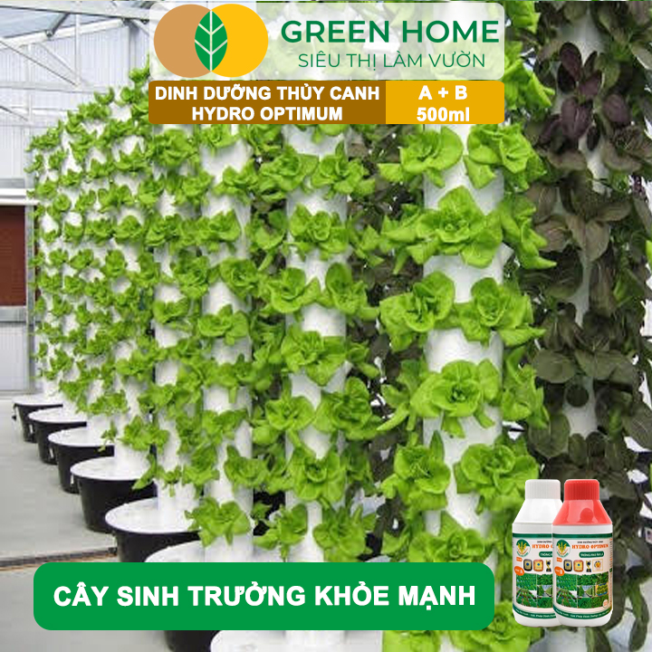 - Hydro Optimum bao gồm 2 chai A và B, cung cấp đầy đủ 13 nguyên tố khoáng thiết yếu (Đa - Trung - Vi lượng) và các axit amin, đảm bảo cây trồng không bị thiếu hụt bất kỳ dưỡng chất nào trong suốt quá trình sinh trưởng.