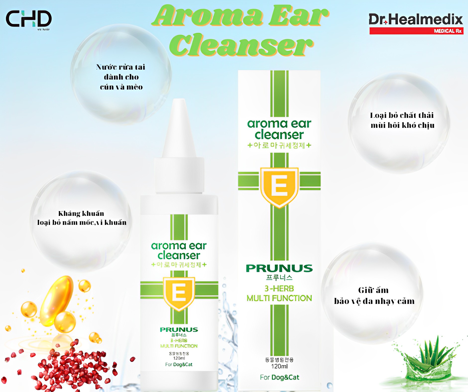 AROMA EAR CLEANSER Nước rửa tai (Hiệu quả kháng khuẩn từ chiết xuất từ lựu) Target: Cần thiết với giống thú cưng tai cụp Nước rửa tai (Hiệu quả kháng khuẩn từ chiết xuất từ