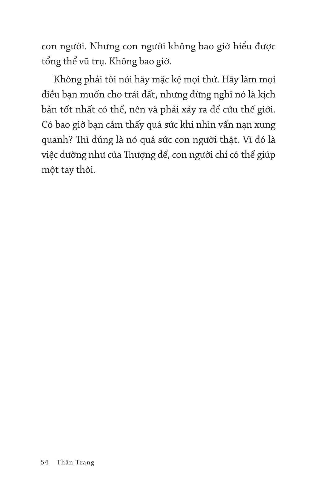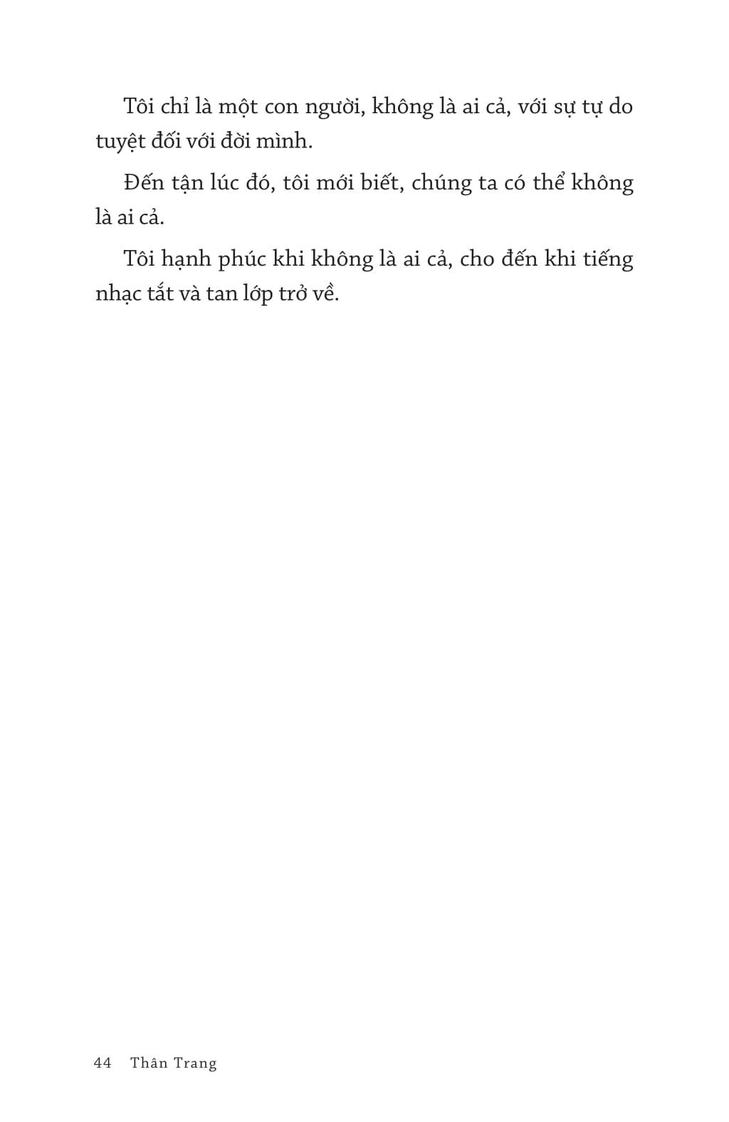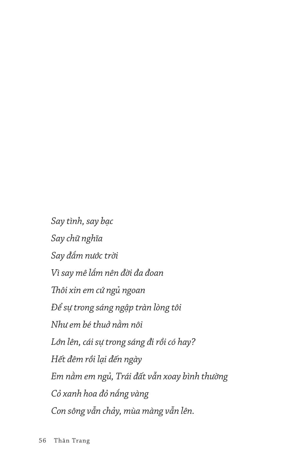Trang Xtd trở lại với một hành trình mới, bút danh mới, không phải tuổi 20 sống như một bông hoa dại – hồn nhiên, nguyên thủy, cứng đầu, hay tuổi 23 nhận ra tự do đi kèm với rất nhiều trách nhiệm. Lần này, một trận ốm nặng khiến cô phải dừng lại mọi việc đang làm để sức khỏe hồi phục. Trở về từ chuyến đi xuyên Việt rong ruổi theo mây trời, săn bình minh và hoàng hôn qua bao nhiêu vùng đất, cô bước vào cuộc sống ngày lo ba lần uống thuốc và sắc thuốc; cảm giác cơ thể đã cố hết sức, nhưng không chống lại được những cơn lạnh từ bên trong chính nó. “Bạn thông minh và tài giỏi ở đâu nếu không giúp được chính mình? Bệnh tật là vị khách không mời mà đến, đến rồi không định đi. Tôi không hề biết, cuộc sống của mình sắp không bao giờ còn như cũ nữa.” (Thân Trang) Trang đã ghi lại hành trình chữa bệnh của bản thân, dọc theo đó cũng là những sự kiện trong hành trình tâm hồn của cô. Bởi vì ai đó, vào ngày nào đó, sẽ cần đến câu chuyện này, và cũng bởi “Chúng ta có thể có khúc quanh này hay khúc quanh kia, vào 20 hay 40 tuổi, không có cuộc đời ai là đường thẳng cả. Chúng ta đã luôn được dạy cách để tiến lên, ai dạy ta cách để dừng lại?”.