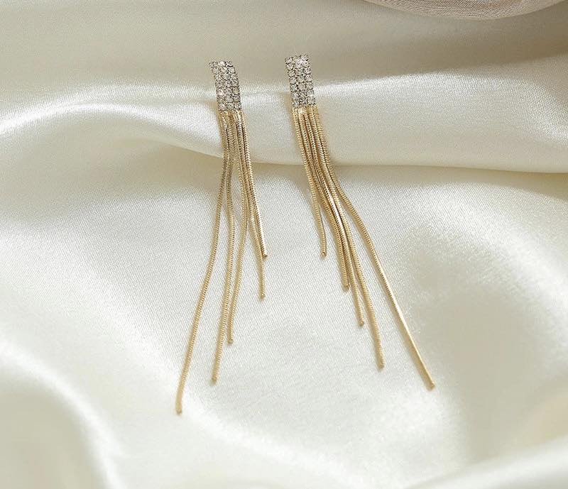Earrings đeo tai nữ dáng dài tua dua sợi thời trang Hàn Quốc • Chất liệu: Hợp kim cao cấp an toàn với da. • Thiết kế tinh xảo, đẳng cấp và style trẻ trung,