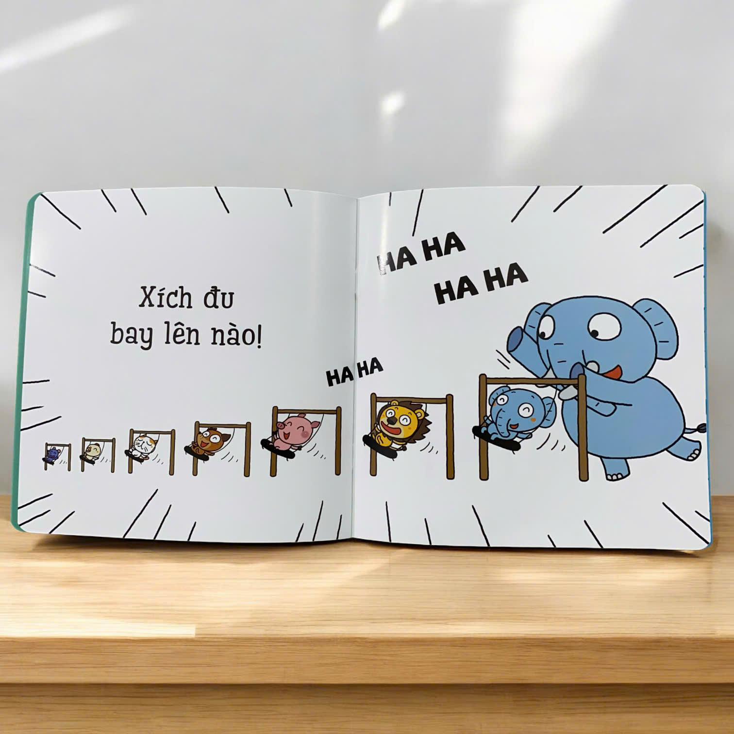 Khi Chuột con, Lợn hồng, Sư tử, và Voi con đều muốn chơi xích đu, họ chỉ có một cái để chia sẻ! Liệu các bạn ấy sẽ làm gì để ai cũng có thể tận hưởng trò chơi này? “CÙNG CHƠI XÍCH ĐU NÀO!” kể câu chuyện ấm áp về tình bạn, giúp các bé học cách chờ đợi, luân phiên và chia sẻ đồ chơi thật hòa đồng và vui vẻ.