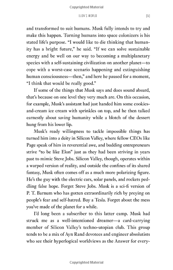 Elon Musk Intl In Elon Musk: Tesla, SpaceX, and the Quest for a Fantastic Future, veteran technology journalist Ashlee Vance provides the first inside look into the extraordinary life and times of Silicon Valley's most