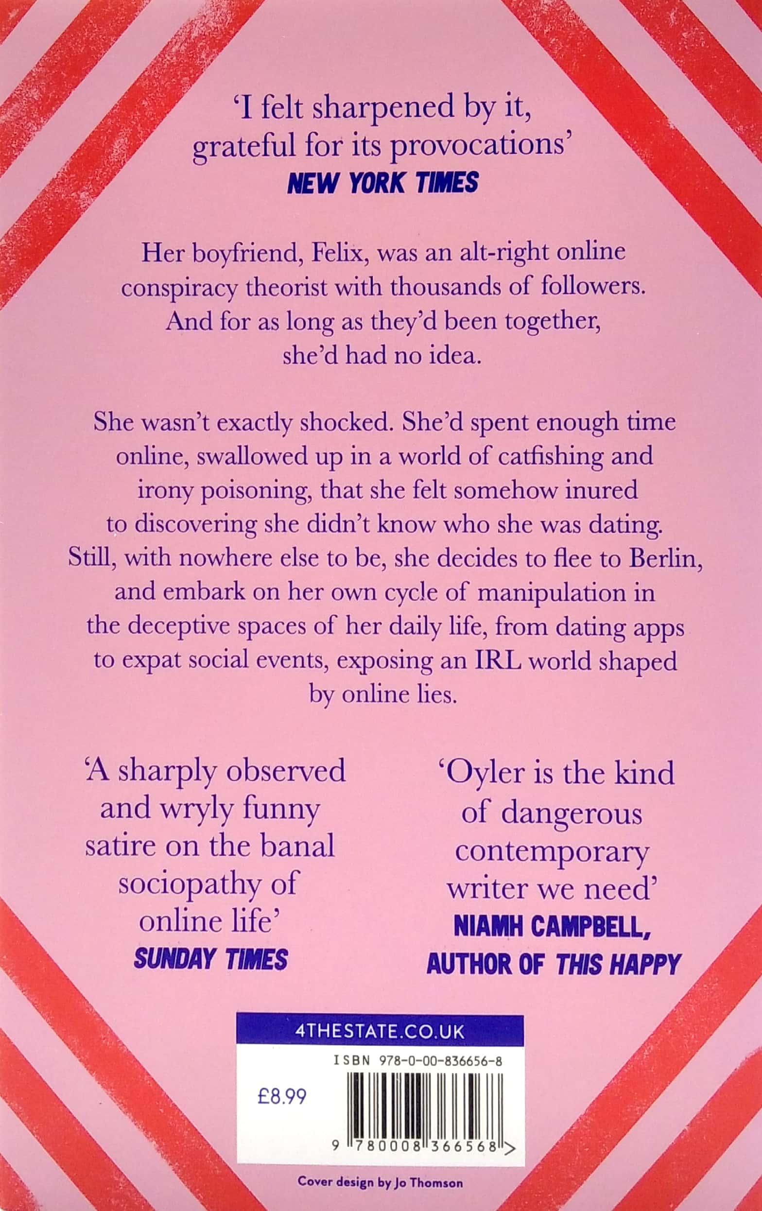 Suddenly left with no reason to stay in New York - or be anywhere in particular - she flees to Berlin, and embarks on her own cycles of manipulation in the deceptive spaces of her daily life, from dating apps to expat social events, open-plan offices to bureaucratic waiting rooms.