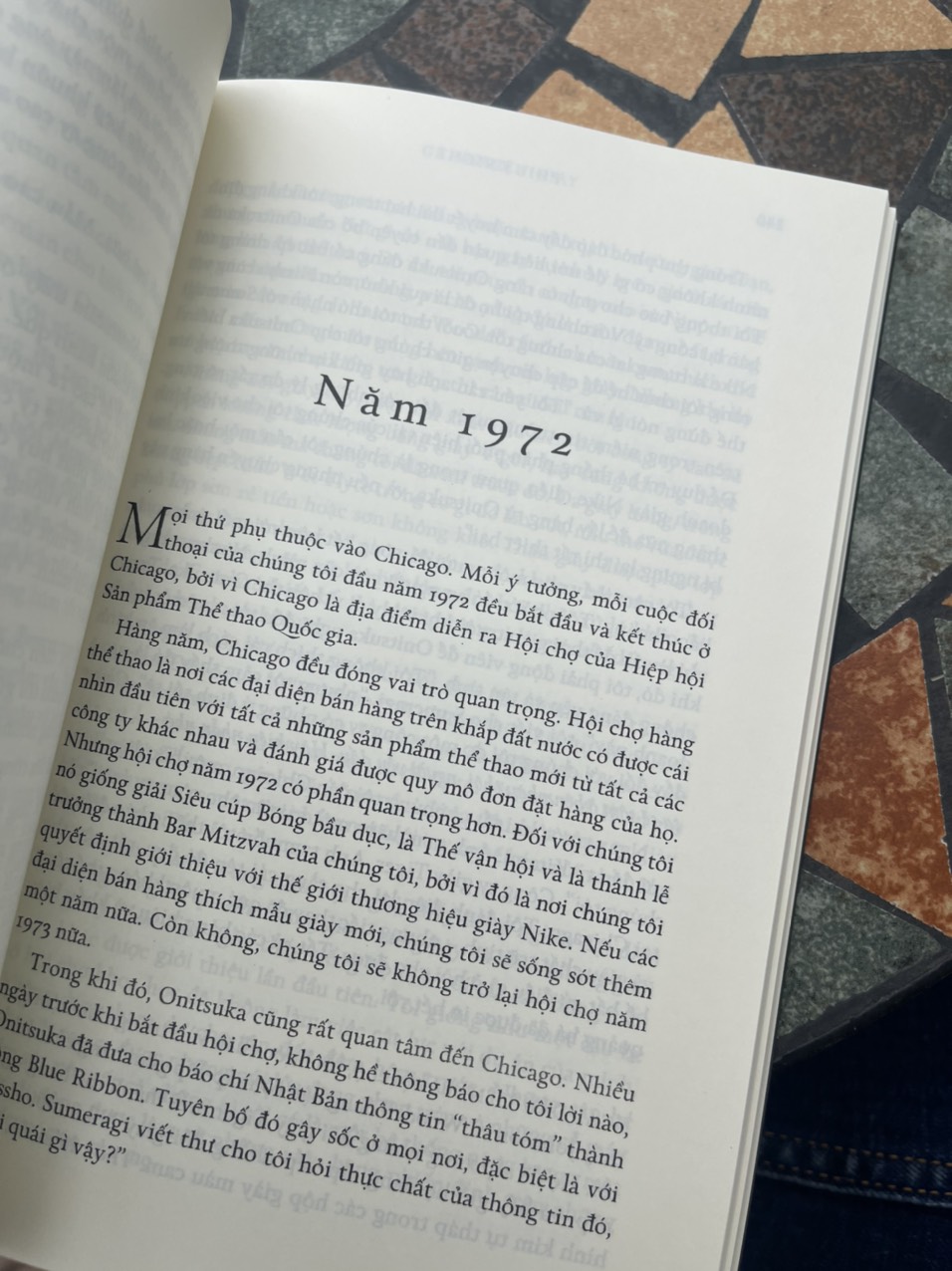 Một câu chuyện cuốn hút, và truyền cảm hứ 24 tuổi, lấy bằng MBA ở Đại học Stanford, trăn trở với những câu hỏi lớn của cuộc đời, băn khoăn không biết tiếp tục làm việc cho một tập đoàn lớn hay tạo dựng sư nghiệp riêng cho mì 24 tuổi, năm 1962, Phil Knight quyết định rằng con đường khác thường mới là lựa chọn duy nhất dành cho ô Rồi ông khoác ba lô đi đến Tokyo, Hongkong, Bangkok, Việt Nam, Calcutta, Kathmandu, Bombay, Cairo, Jerusalem, Rome, Florence, Milan, Venice, Paris,, Munich, Vienna, London, Hy Lạ Để rồi khi về lại quê nhà ở bang Oregon, ông quyết định mở công ty nhập khẩu giày chạy từ Nhật. Ban đầu chỉ một đôi để thử, rồi vài chục đôi, bán tại tầng hầm của gia đình bố mẹ Phil. Đam mê, quyết tâm, dám chấp nhận thất bại, vượt qua nhiều chông gai từ chuyện thiếu vốn, đến chuyện cạnh tranh từ đối thủ nhập khẩu khác… Phil Knight đã đưa công ty nhập khẩu giày ra đời với 50 đô-la mượn của bố phát triển đến doanh nghiệp có doanh số hơn 1 triệu đô-la chỉ 10 năm sau đó, năm 1972.