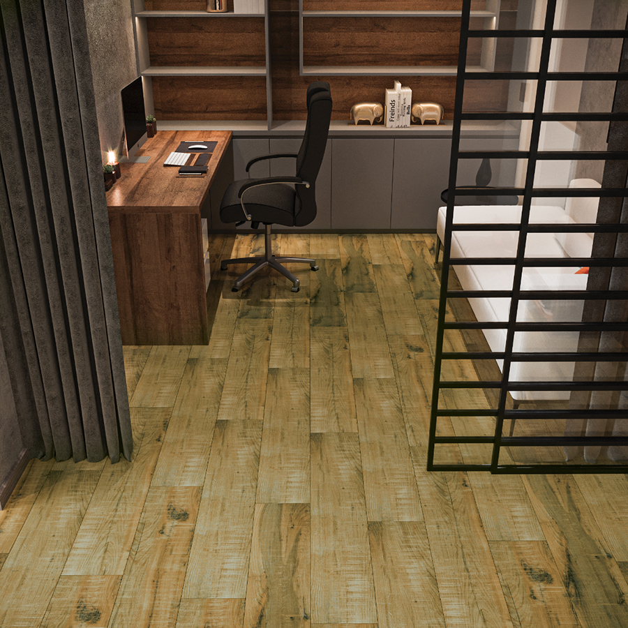 - Gạch lát nền có họa tiết vân gỗ tự nhiên, với các đường vân rõ nét, mô phỏng vẻ đẹp tự nhiên của gỗ. Các đường vân này chạy dọc theo chiều dài của gạch, tạo cảm giác ấm áp và mộc mạc.