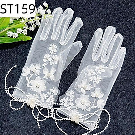 Găng tay cô dâu vải voan đính hoa mẫu ngắn