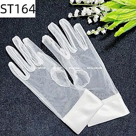 Găng tay cô dâu voan trắng cổ tay lụa phi bản to
