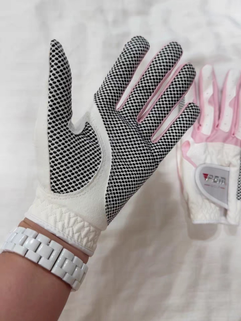 Thương hiệu : PGM Mô tả sản phẩm ST032 là mẫu găng mới của năm 2023 với thiết kế hở ngón thời trang và chất liệu lưới thoáng mát. - Màu sắc: Trắng hồng, trắng