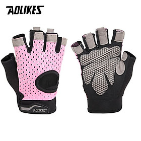 AOLIKES 113 - 1 đôi -Găng tay tập gym hở lưng có đệm lòng bàn tay chống trượt chuyên gym-chính hãng