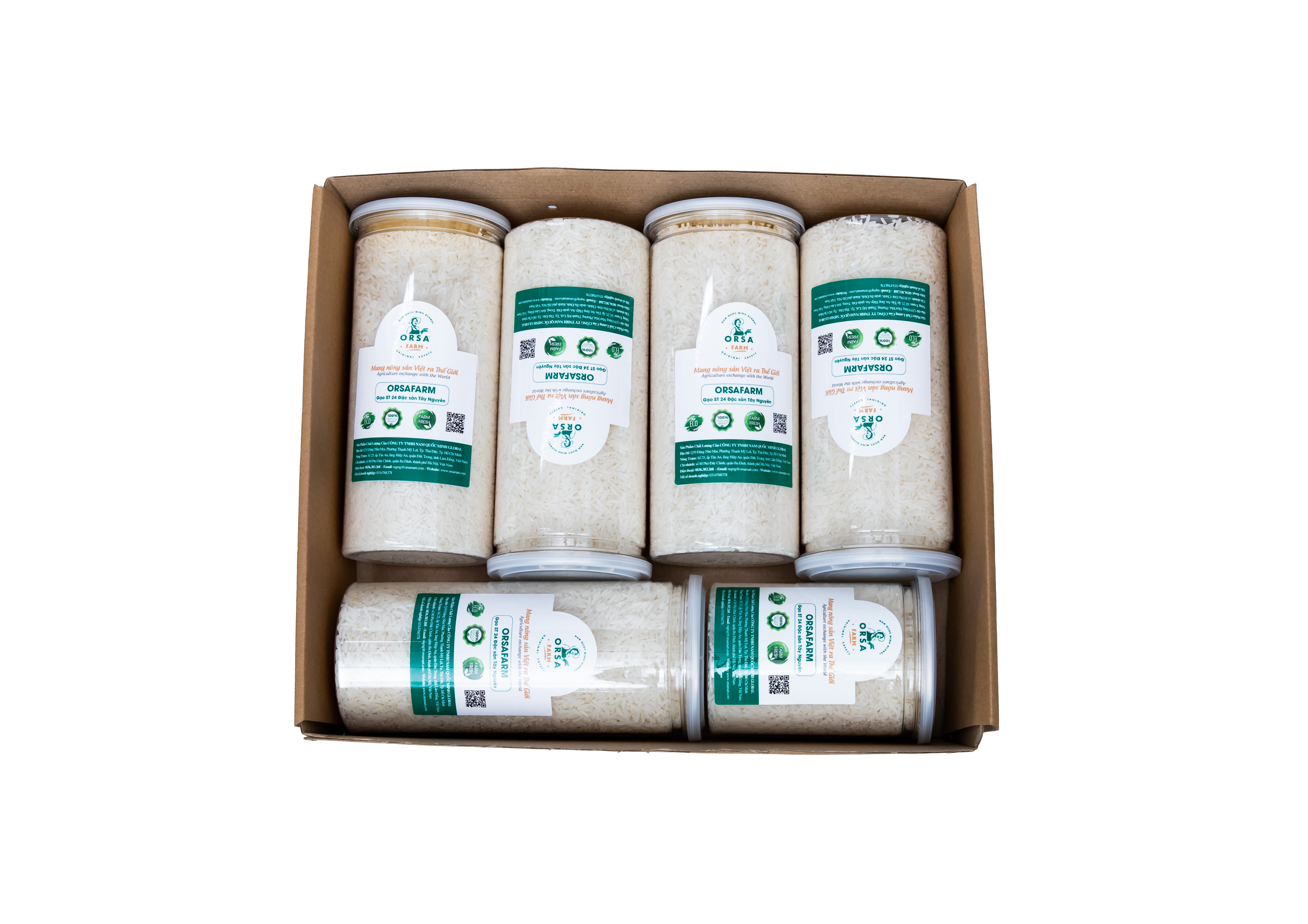 - Ngoài ra, có thể xay gạo OrSaFarm thành bột để chế biến những món ăn khác. ST24 OrSaFarm Buon Choah rice should be cooked between 1: 0.8 and 1: 1 water ratio. When left to cool, the OrSaFarm rice grains are still soft and supple, keeping the same fragrance as when they were still hot. Please do not rinse rice for too long as this will cause the loss of many nutrients in the newly cooked rice. Store your OrSaFarm rice in a dry, cool place avoiding moisture, strange odors, insects and pests. Please reseal tightly after opening OrSaFarm Rice bag or can + Hướng Dẫn Bảo Quản Gạo ORSAFARM : Bảo quản tốt nhất là dưới 15˚C, nơi thoáng mát, khô ráo. Với Nhiệt độ lạnh sẽ giữ được dưỡng chất và Vitamin của gạo. Gạo đựng trong hộp nhựa trong giúp quan sát được chất lượng gạo hướng hữu cơ bên trong, bao bì chuẩn VSATTP, và bảo quản tốt nhất dưỡng chất. Ngăn mát tủ lạnh hoặc nhiệt độ phòng máy lạnh là nơi lý tưởng để lưu trữ hiệu quả. ++ Bao bì sẵn có của ORSAFARM: Hộp nhựa trong 500 gram, 800gram, bao VSATTP 5kgs, 10kgs và 50kgs, (Hoặc theo yêu cầu Jumpo packing 500kgs, Jumpo packing 1.000kgs). Quy Cách Đóng Gói : túi nhựa PA (có tính chất dai, deo, trong rất an toàn cho sức khoẻ của Quý Khách). Túi và hộp nhựa chuẩn VSATTP. Túi có quai xách dễ dàng khi di chuyển.