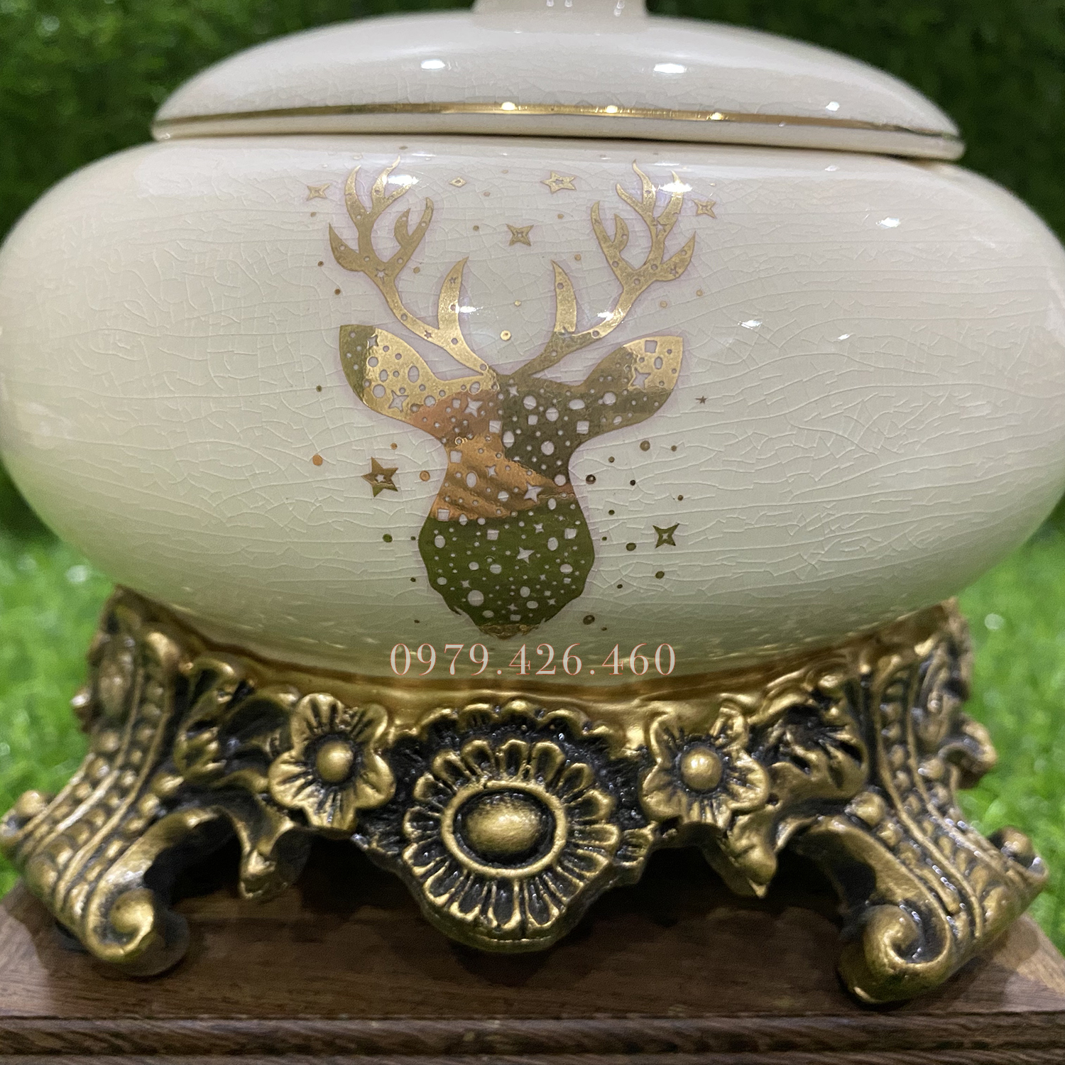 Gạt tàn gốm mạ vàng 18k cao cấp không thể thiếu trong không gian nhà bạn Kích thước: 15 x 15 x 15cm Mạ vàng 18k rất sang trọng và đẹp mắt Thiết kế nắp