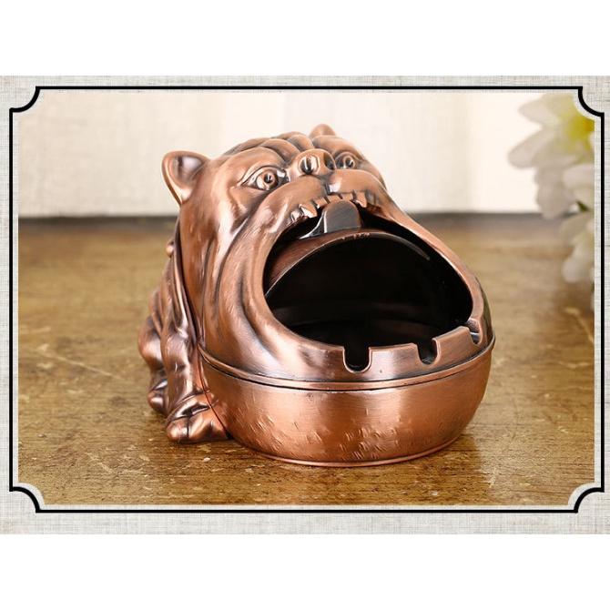 Hình dáng : chú chó Bulldog Thân gạt tàn có thiết kế khe giữ thuốc Kích thước : dài 15cm, rộng 11cm, cao 8,5cm Màu : Vàng Đồng, Đồng Đỏ Ưu điểm : dễ dàng