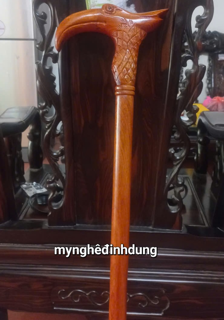 ✨Gậy batong khắc đầu đại bàng bằng gỗ hương đẹp long lanh dài 90x3cm