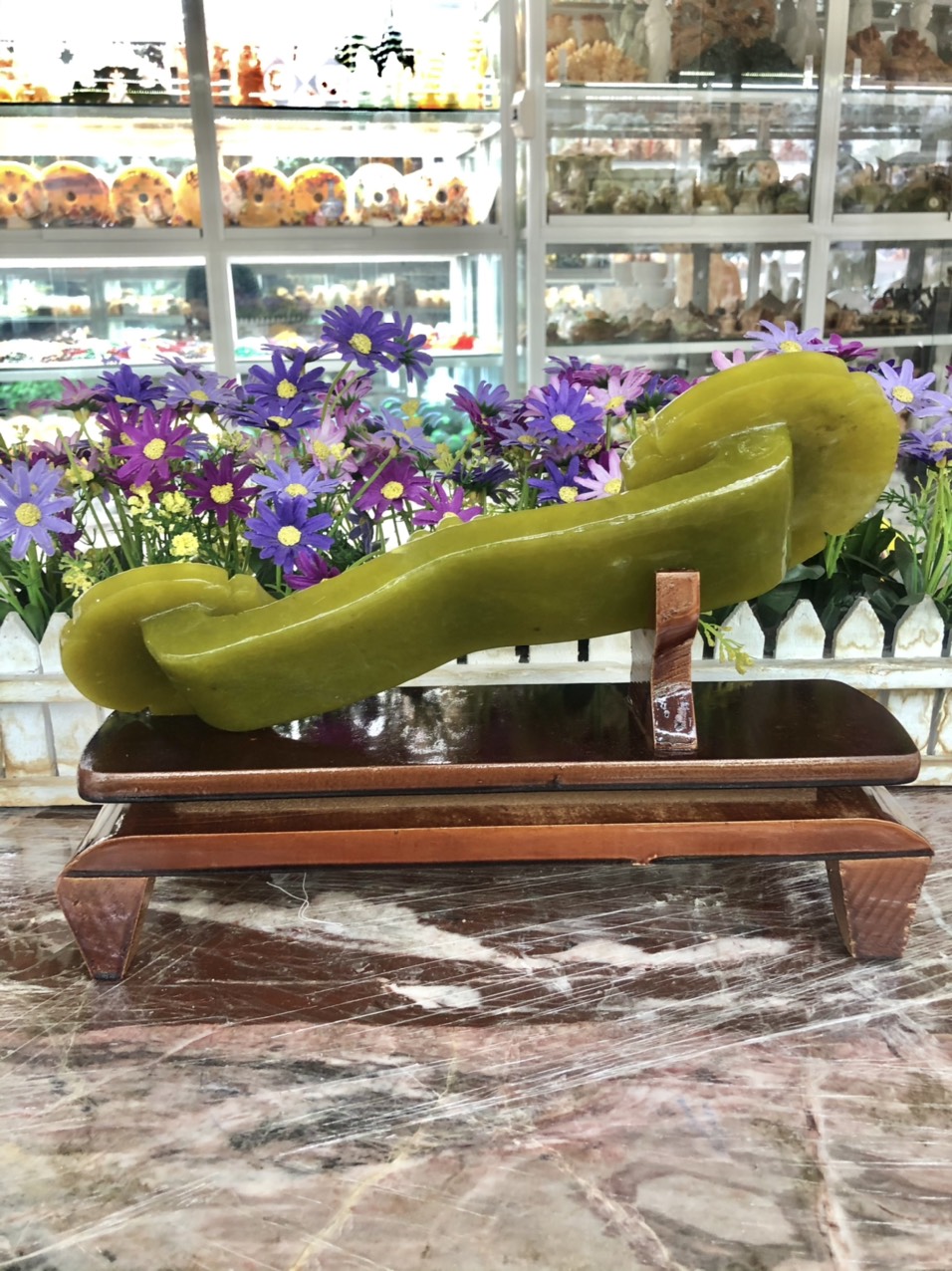 Chất liệu: Đá bạch ngọc Kích thước: Dài 32 cm x Rộng 11 cm x Cao 15 cm Khối lượng: 1.38 kg Bộ sản phẩm gồm: 1 gậy như ý và 1 đế gỗ Ý