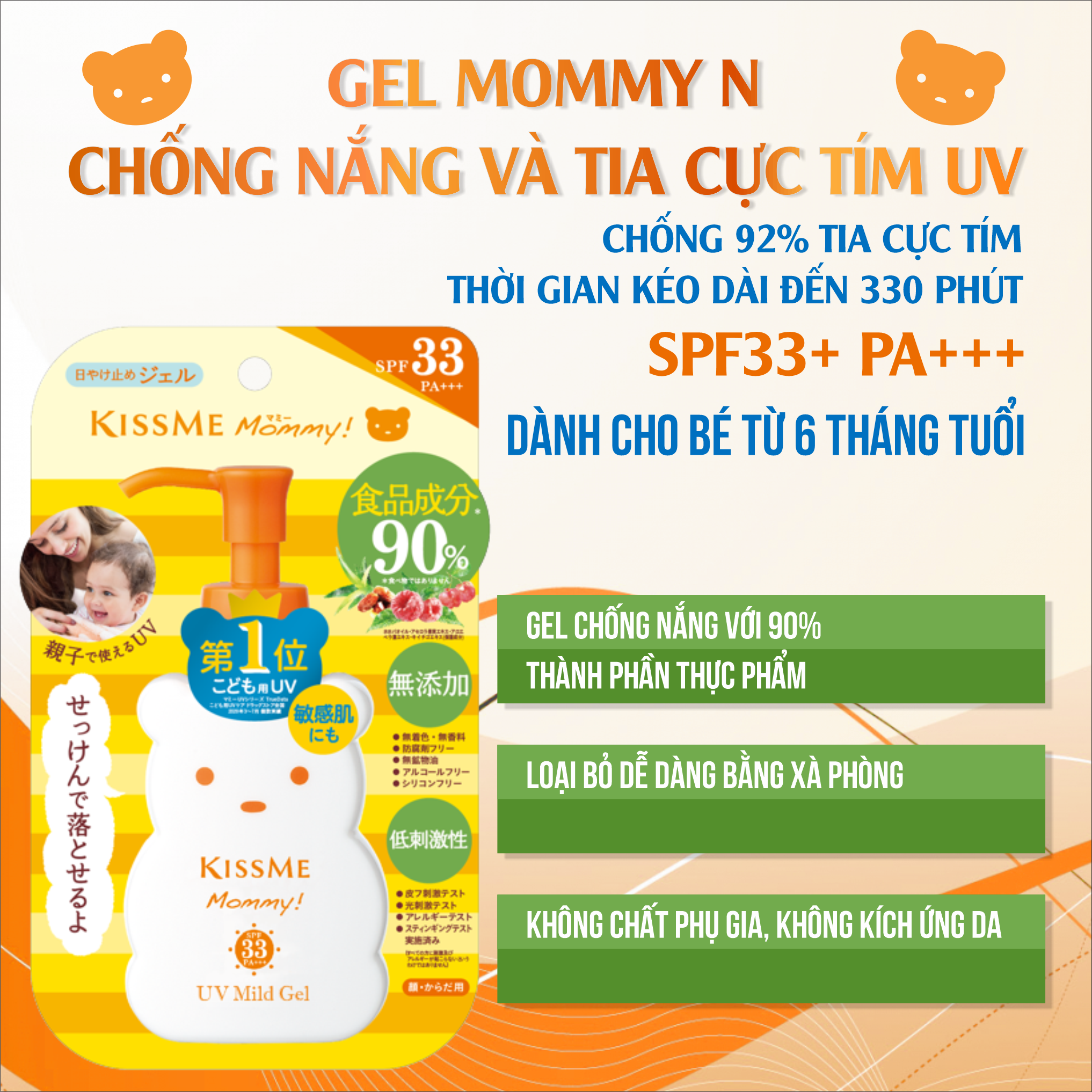 Gel Chống Nắng Và Dưỡng Ẩm Kissme Mommy Dành Cho Bé Từ 06 Tháng Tuổi Và Làn Da Nhạy Cảm Số Lô: In trên sản phẩm NSX: In trên bao bì HSD: 5 năm
