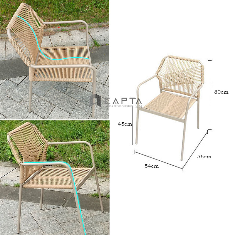 Mua tại TiktokGhế café sân vườn ngoài trời đan dây CC2031-T Nội thất Capta Ghế thư giãn ban công khung sắt có tay tựa