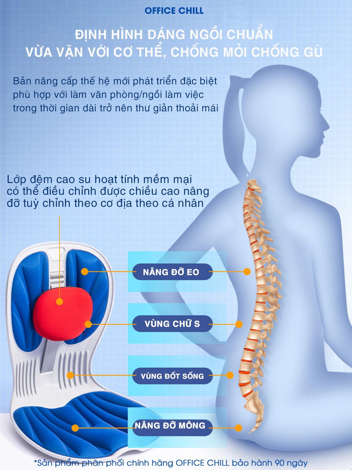 Ghế chỉnh dáng ngồi công thái học chính hãng Office Chill, giúp bạn ngồi thẳng lưng đúng tư thế từ đó giảm hẳn đau lưng, chống mỏi, chống gù khi ngồi làm việc, học tập trong thời gian dài;