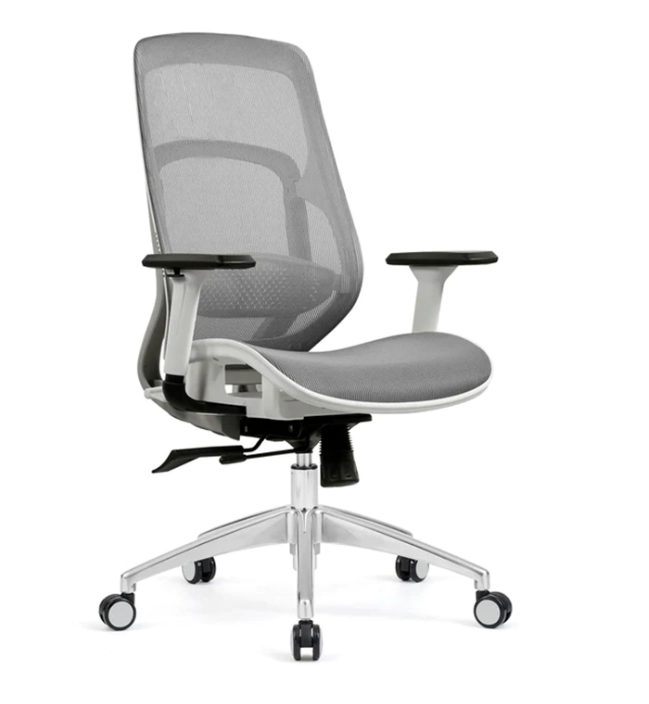 Mô tả sản phẩm: - Khung ghế: Nhựa PP cao cấp màu xám, chịu lực tốt. - Chất liệu: Lưới thoáng khí, co giãn, màu xám vân sọc sang trọng. - Tay ghế: 9D đa