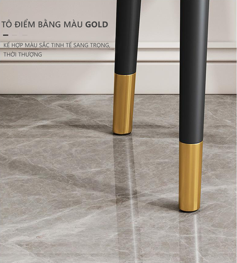 Ghế ngồi bàn trang điểm nệm da màu nâu bò Beetle B-P1 Nội thất Capta Ghế trang điểm nệm PVC cao cấp chân mạ màu vàng Gold Luxury tại HCM - Chất liệu: thân nhựa