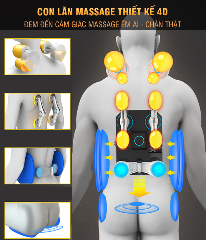 Con lăn thiết kế 4D, tạo ra kỹ thuật massage chuyên nghiệp