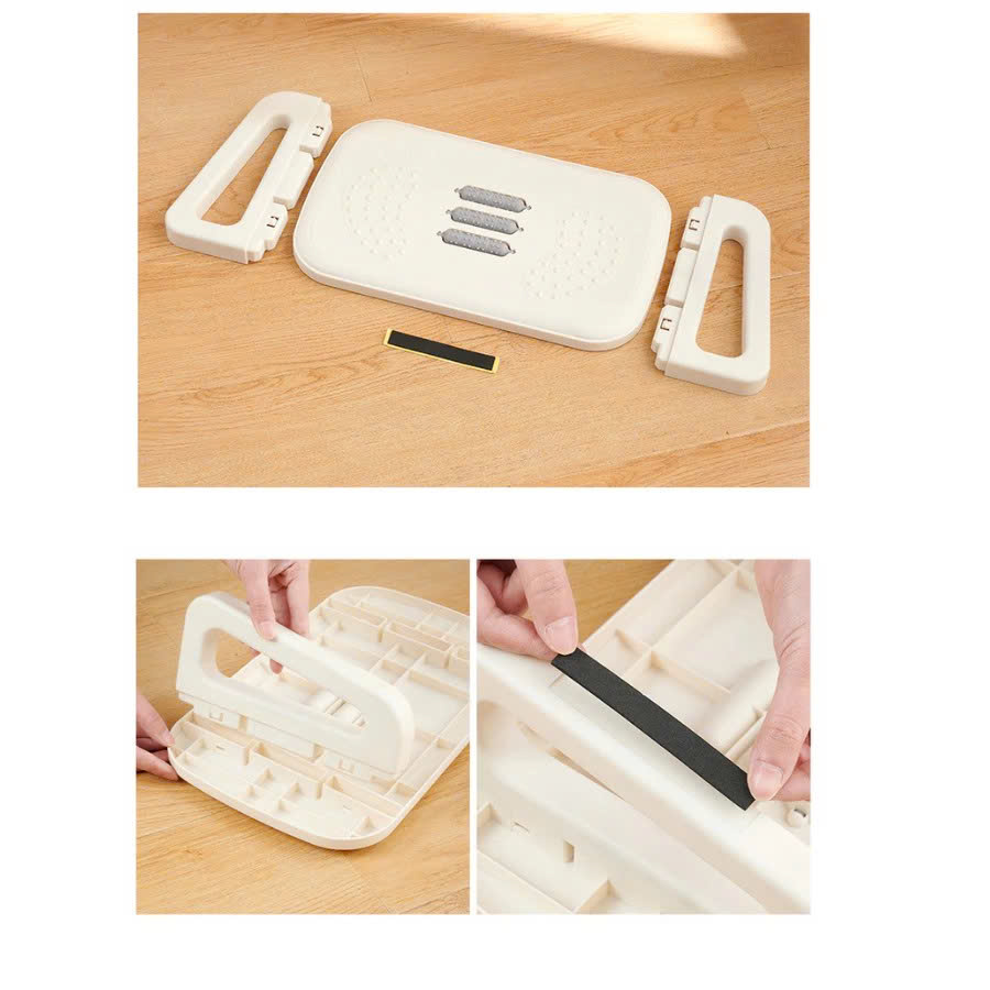 Chất liệu: Nhựa cứng ABS + Đệm cao su + 2 bánh xe Kích thước: 37x23x12 cm Trọng lượng: 0.5kg Đóng gói: Các chi tiết được tháo dời để thuận tiện cho việc vận chuyển