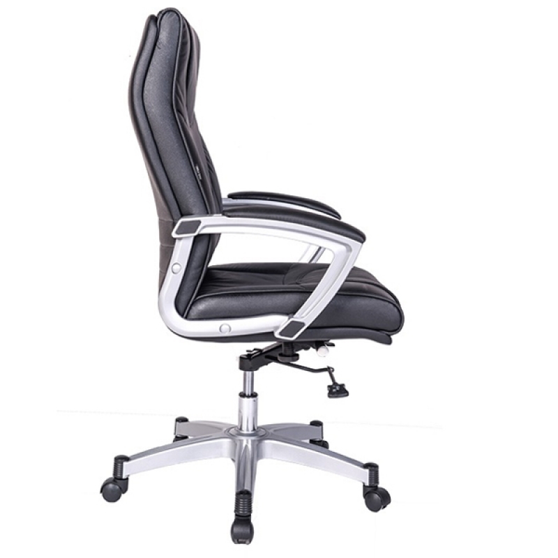 Ghế trưởng phòng SG903A thiết kế kiểu ghế xoay cao cấp, bọc da công nghiệp màu đen, tựa có các đường may trang trí. Ghế sử dụng chân tay nhựa, sơn phủ màu nhũ bạc, tay bọc da công nghiệp. Bát có chức năng điều chỉnh độ cao cần hơi và độ ngả của ghế.