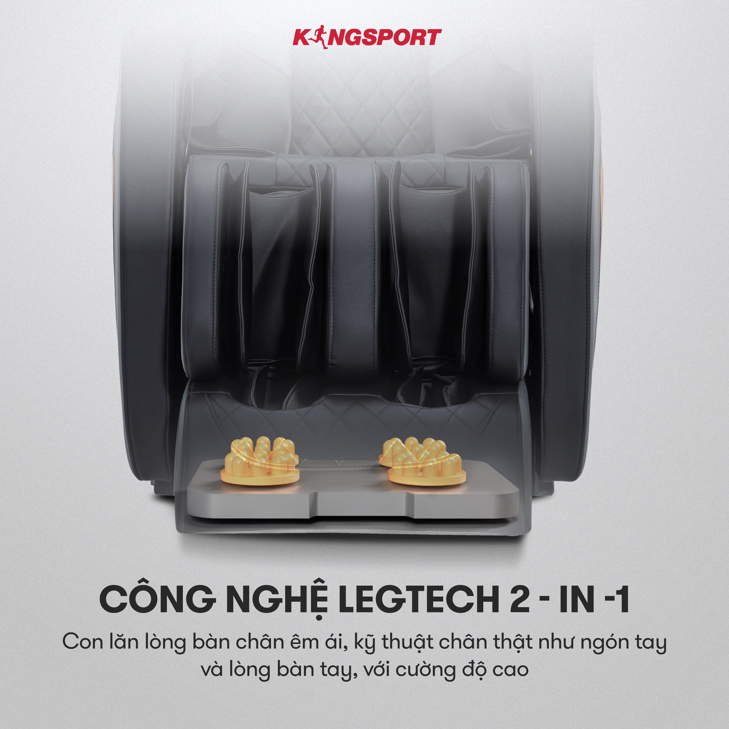 Ngoài công nghệ trên, dòng ghế G8 còn sở hữu công nghệ massage Legtech 2-in-1 độc quyền đến từ nhà KingSport. Chức năng chính của công nghệ này hỗ trợ bấm huyệt chính xác toàn diện và mạnh mẽ phù hợp với nhiều đối tượng khách hàng.