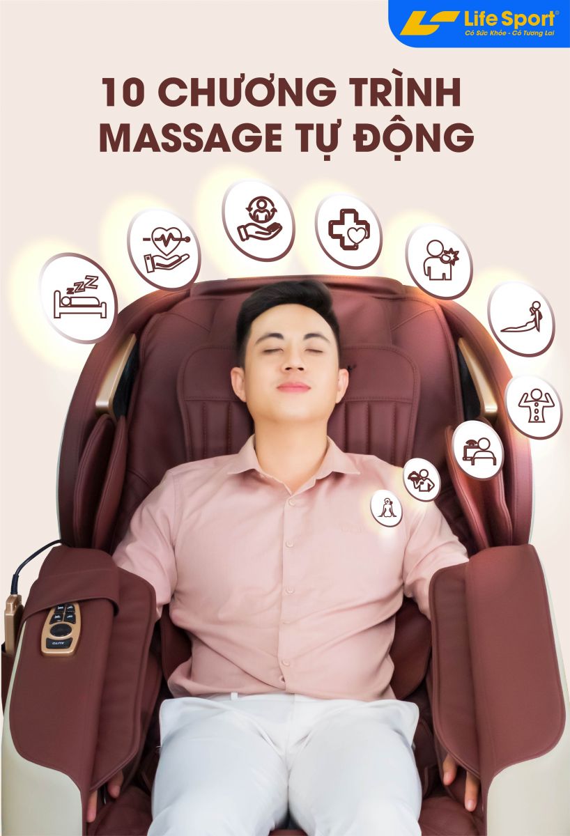 Ghế massage này còn được trang bị đa dạng chương trình tập với 10 bài tập tự động, những chương trình tập từ massage nhẹ nhàng thư giãn, đến các chương trình massage chuyên sâu, hỗ trợ phục hồi chấn thương, giảm đau nhức vô cùng hiệu quả.