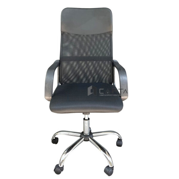 Chất liệu: Lưng lưới, nệm ngồi vải lưới, tựa đầu bọc PVC, tay nhựa, chân thép mạ chrome / chân nhựa đen