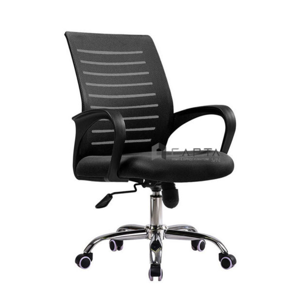 Ghế văn phòng lưng trung nhập khẩu CE4311-MP - Chất liệu: Lưng trung lưới, nệm PVC. Khung lưng thép mạ chrome Tay vòng thép mạ ốp PU. Chân thép mạ chrome cao cấp. - Kích