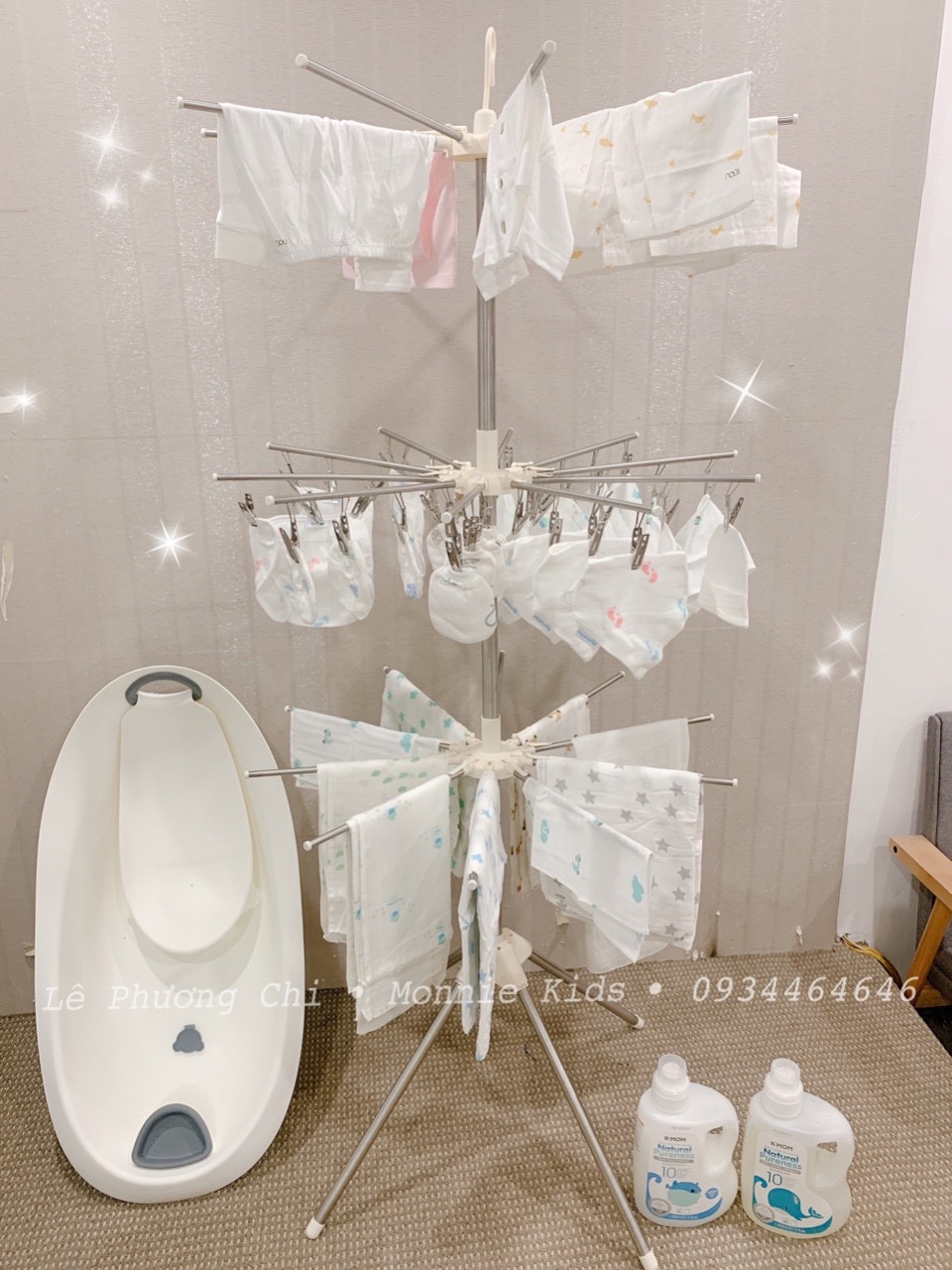 - 3 tầng cách biệt phơi được nhiều đồ, có 1 tầng 30 kẹp thuận tiện phơi bao tay, bao chân, khăn cho bé