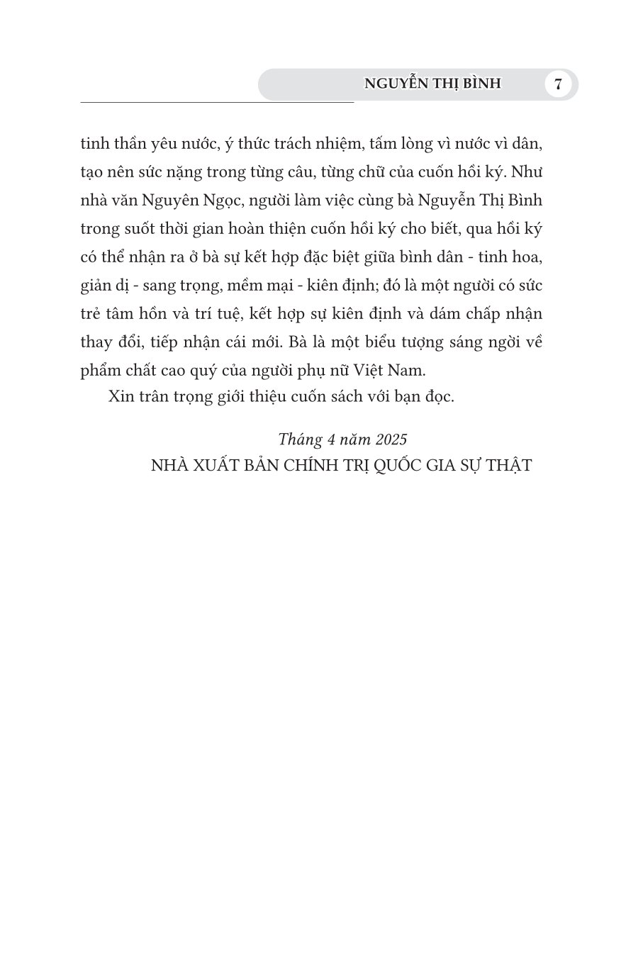 Hồi ký "Gia đình, bạn bè và đất nước" của nguyên Phó chủ tịch nước Nguyễn Thị Bình tái bản nhân kỷ niệm 50 năm thống nhất đất nước.