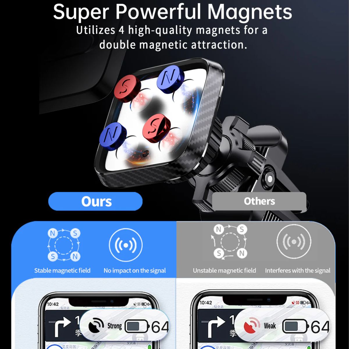 - Điểm nổi bật nhất của Choetech H042 chính là “mag-netic” (nam châm từ tính) mạnh mẽ, giúp giữ chắc chắn điện thoại của bạn mà không cần các thao tác kẹp hoặc gắn phức tạp. Với lực hút từ tính mạnh, giá đỡ có thể cố định điện thoại của bạn ở vị trí an toàn, ngay cả khi xe đi qua những đoạn đường gồ ghề hoặc vào cua. Đặc biệt, giá đỡ tương thích với tất cả các loại điện thoại có kích thước khác nhau, từ i-Phone đến Sam-sung, từ dòng điện thoại And-roid đến các thiết bị khác.