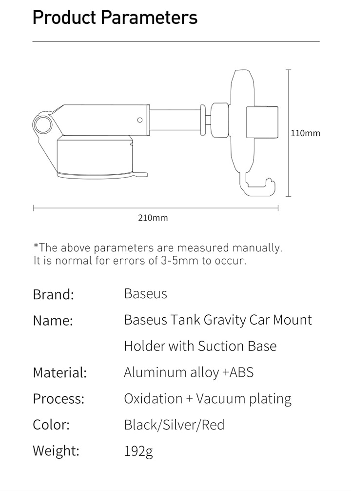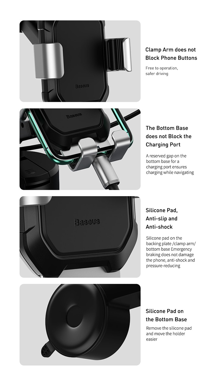 Tính năng cơ bản Giá đỡ điện thoại Baseus Tank Gravity Car Mount Holder with Suction Base SUYL gắn kính hoặc táp lô trên xe hơi - Hàng chính hãng