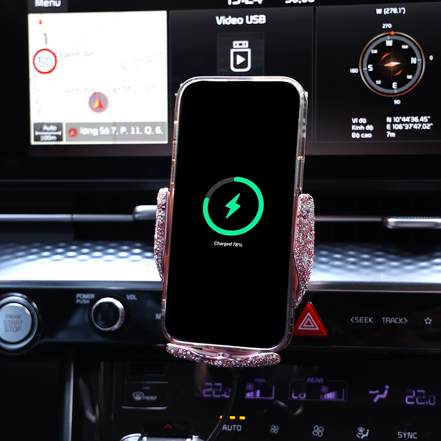 ✨Giá Đỡ Điện Thoại Đính Đá Sang Trọng Cảm Biến Hồng Ngoại Kẹp Mở Tự Động Kiêm Sạc Không Dây Trên Ô Tô CIND V56