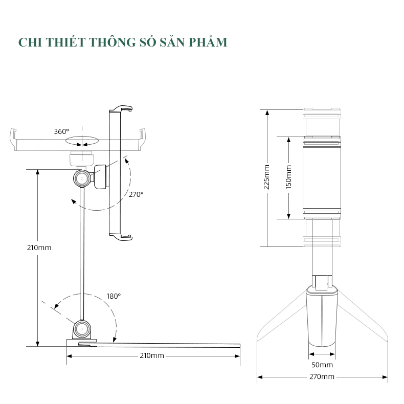 Độ dày bàn: 10~75mm Nặng: 2kg Kích thước: 117x520x655mm Nâng hạ độ cao: 133~428mm Vươn rộng tối đa: 515mm Góc xoay dọc: -180°~+180° = 360° Góc quay ngang: -90°~+90° = 180° Góc lật màn (úp/ngửa):