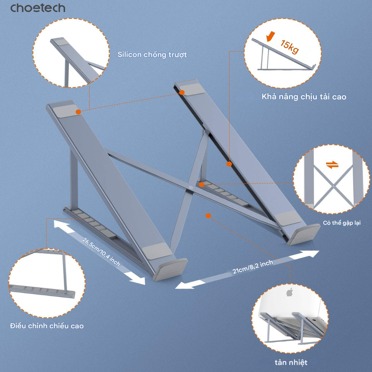 Mua tại TiktokGiới thiệu Giá đỡ laptop tản nhiệt gấp gọn Choetech H055 cho máy từ 9' đến 17' inch - Hàng chính hãng