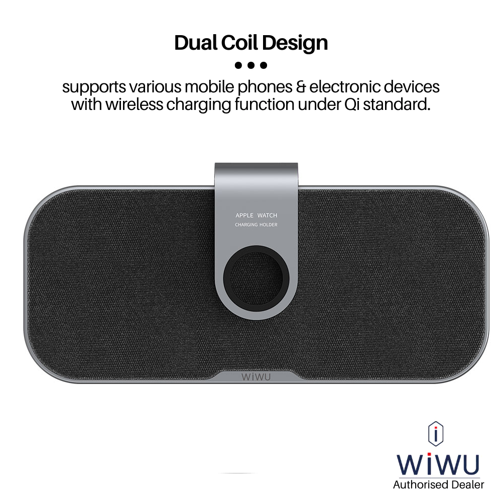 Giá đỡ từ tính kiếm đế sạc không dây Qi sạc nhanh 15W 3 in 1 hỗ trợ sạc dành cho Tai nghe / Appe Watch / iPhone hiệu WIWU Power Air Wireless Charger PA3IN1B