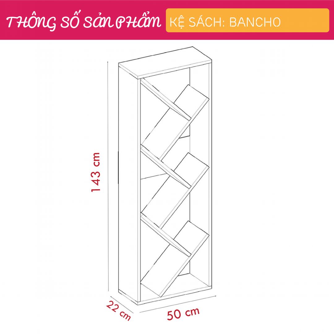 Mua tại TiktokKệ sách SMLIFE Bancho được ví như một tác phẩm nghệ thuật với phong cách đơn giản sẽ giúp bạn xắp sếp những cuốn sách một cách sành điệu và độc đáo. Kệ sách Bancho mang đến sự tinh tế, hiện đại cho phòng khách của bạn và đồng thời cung cấp một không gian lớn cho các vật dụng trang trí. Sản phẩm phù hợp cho mọi phong cách trang trí căn hộ và văn phòng làm việc. Sử dụng vật liệu ván ép công nghiệp MDF chống ẩm phủ Melamine cao cấp giúp kệ sách SMLIFE có độ bền cao, chống trầy và chống ẩm rất tốt. Bạn có thể tự lắp đặt sản phẩm dễ dàng với các phụ kiện và hướng dẫn đi kèm. ĐẶC ĐIỂM SẢN PHẨM: