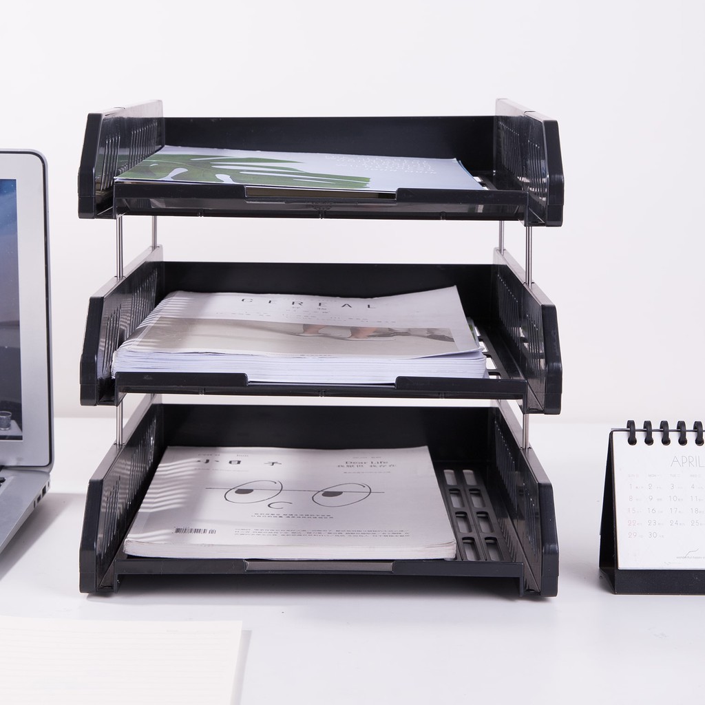 Khay đựng hồ sơ 3 ngăn có thể tháo rời khi không sử dụng. Sản phẩm phù hợp với nhu cầu lưu trữ tài liệu, hồ sơ tạm thời tại khu vực làm việc.