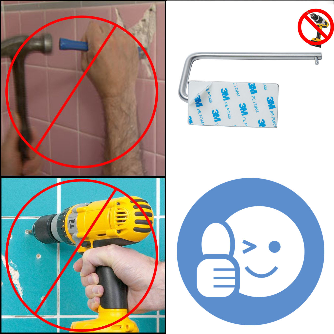 MÓC TREO CUỘN GIẤY VỆ SINH - INOX 304 - DÁN TƯỜNG GẠCH MEN - G1