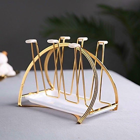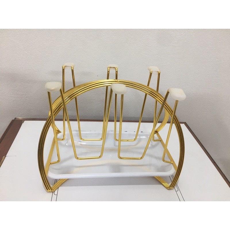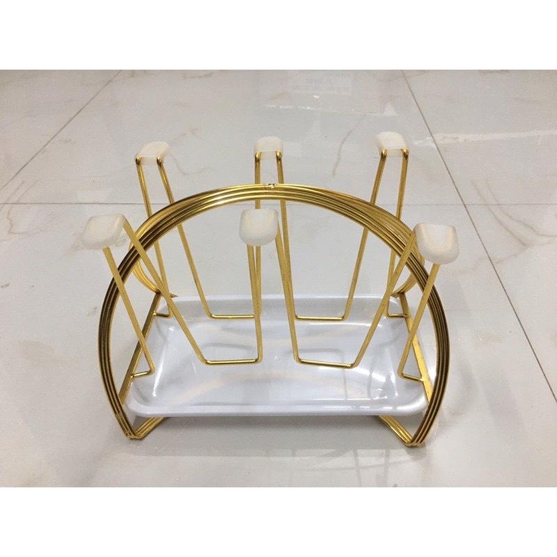 Giá cắm 6 chiếc cốc dạng gọn (CL95965) Giá có khay hứng nước Chất liệu sắt sơn tĩnh điện cao cấp màu vàng cực sang chảnh Dễ vệ sinh, không bị hoen rỉ Kiểu dáng