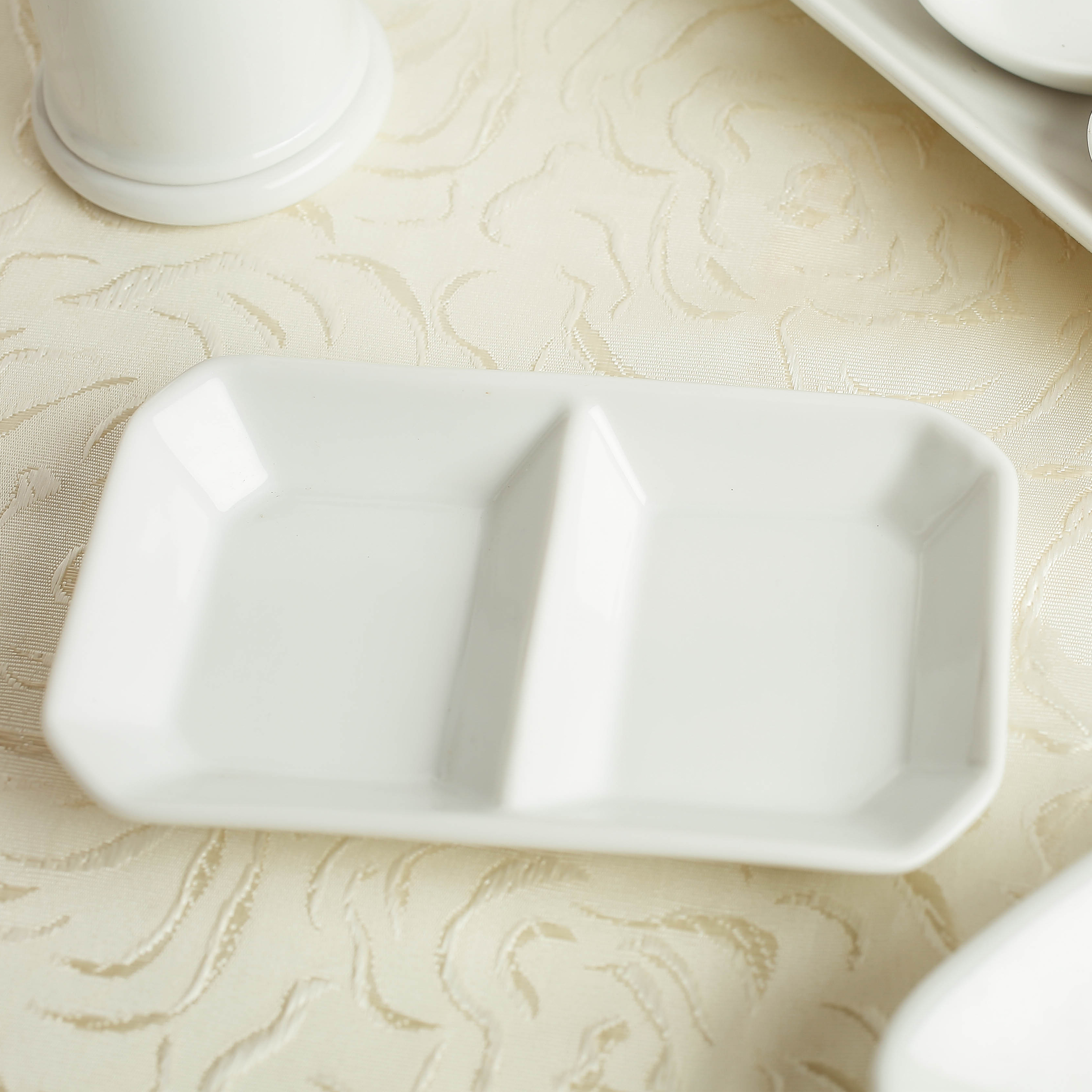 Đĩa chấm (đĩa gia vị hai ngăn) sứ cao cấp Long Phương là sản phẩm không thể thiếu trong mỗi bữa cơm gia đình và nhà hàng, khách sạn. Sản phẩm thiết kế nhỏ gọn, hai ngăn , tiện lợi cho việc sử dụng. Đặc biệt, là an toàn cho sức khỏe người dùng bởi những quy trình nghiêm ngặt, kỉ luật trong sản xuất.