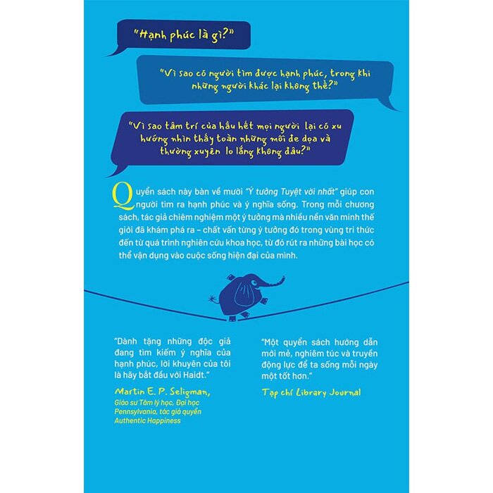 “Dành tặng những độc giả đang tìm kiếm ý nghĩa của hạnh phúc, lời khuyên của tôi là hãy bắt đầu với Haidt.” -MartinE.P.Seligman, Giáo sư Tâm lý học, Đại học Pennsylvania, tác giả quyển Authentic Happiness