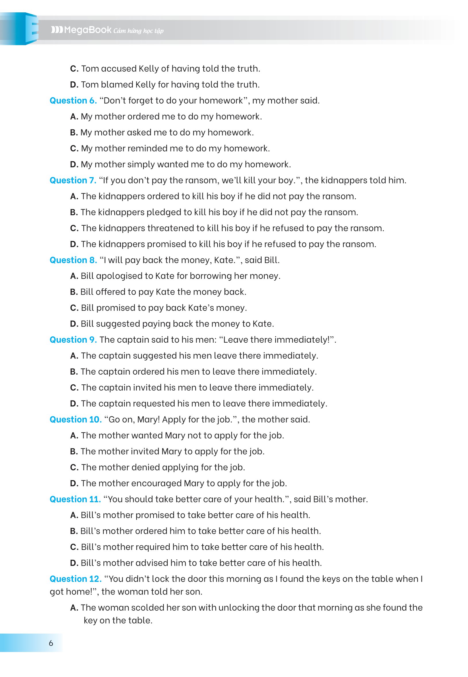 - Đa dạng câu hỏi Cuốn sách cung cấp 600 câu hỏi trắc nghiệm với lời giải chi tiết, 300 câu hỏi luyện tập tổng hợp và 400 câu hỏi tự luyện. Điều này giúp học sinh có nhiều cơ hội thực hành và kiểm tra kiến thức, đảm bảo họ hiểu rõ ngữ pháp và có thể tự kiểm tra năng lực của mình. Cuốn sách không chỉ dành cho học sinh mà còn là tài liệu tham khảo hữu ích cho giáo viên. Nó cung cấp một ngân hàng đề kiểm tra phong phú, giúp giáo viên thiết kế bài kiểm tra và bài tập cho học sinh. Điều này giúp tạo ra môi trường học tập tốt hơn và nâng cao hiệu suất học tập của học sinh.