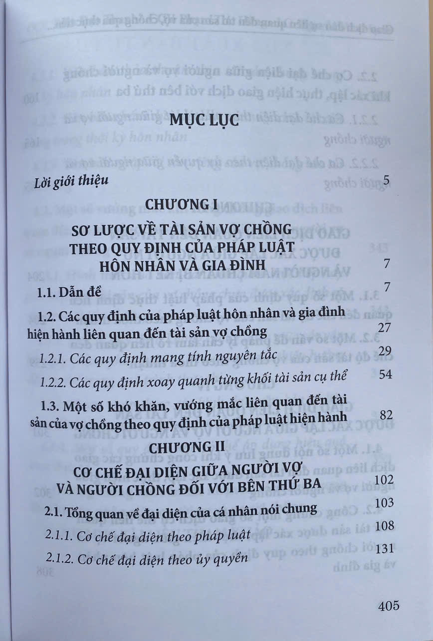 Mục lục: Chương 1: Những quy định chung Chương 2: Kết hôn Chương 3: Quan hệ giữa và chồng Chương 7: Cấp dưỡng Chương 8: Quan hệ hôn nhân và gia đinh có yếu tố
