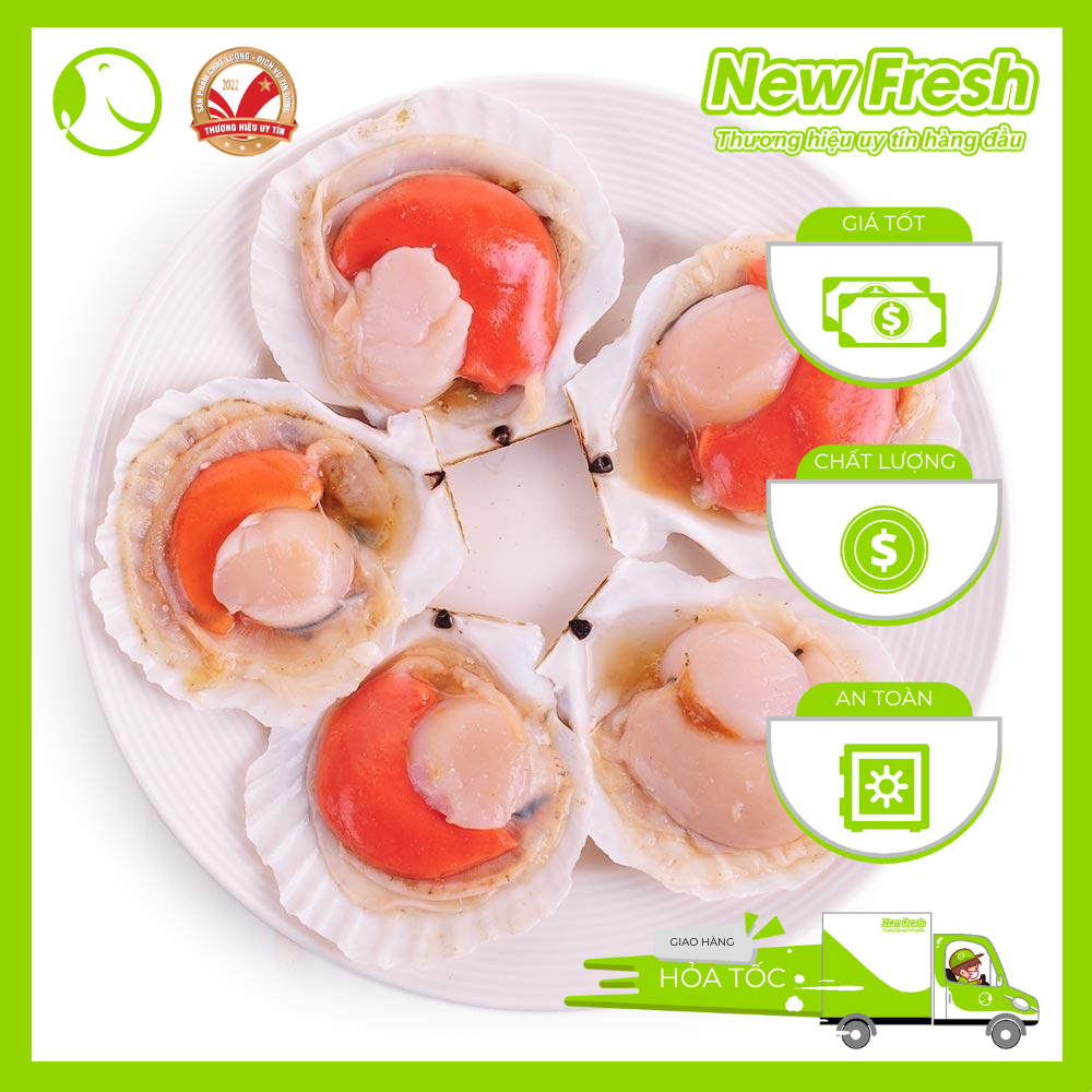 Với sản phẩm tươi sống, trọng lượng thực tế có thể chênh lệch khoảng 10%. - Xuất xứ: Japan - Nhãn hiệu: New Fresh - Quy cách: 9-11 Con/Kg - Bảo quản: Đông (-18 độ C) - Hạn